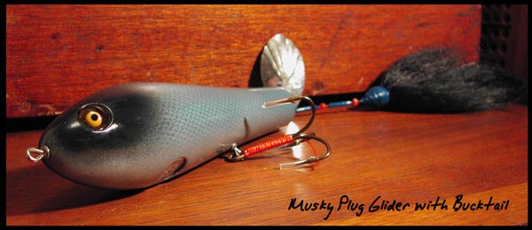 Musky Plug Glider with Bucktail Trailer made from black walnut 14" overall